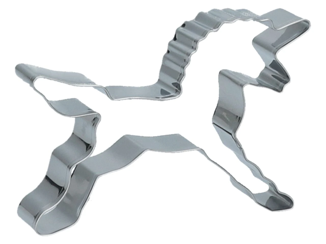 Für Plätzchen, Fondant, Blütenpaste, Marzipan und Modellierschokolade verwenden Sie diesen Ausstecher Einhorn aus Edelstahl mit ca. 8,5 cm x 6 cm. Die Edelstahl-Ausstechform ist rostfrei, säurebeständig und spülmaschinenfest. Deswegen können Sie den Keks-Ausstecher auch zum Basteln benutzen.