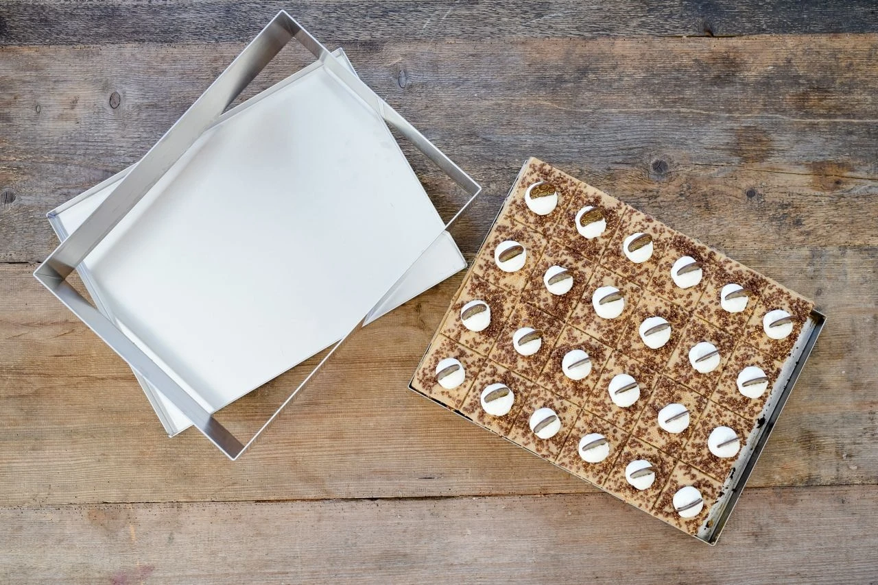 Backen Sie auf diesem Unterblech aus Aluminium flache Kuchen und Gebäcke wie Müsliriegel, Nussecken , Zimt- und Kokosschnitten. Kombiniert mit einem Rahmen in 5 cm oder in 8 cm ist es unverzichtbar zum Backen und Zubereiten von Sahne-, Joghurt- oder Fruchtschnitten. Das Duo mit seinen Maßen von 30 x 40 cm und einer Höhe von 5 oder 8 cm erleichtert das Einsetzen von Sahneschnitten ungemein und ist außerdem prima für saftige Kirsch- und Rohrnudeln, rechteckige Motivtorten oder lockere, hohe Kuchen.