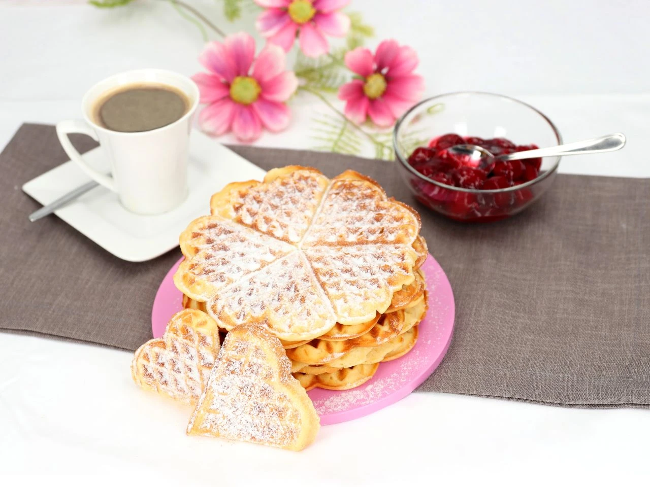Sie geben der Fertigbackmischung für Herzwaffeln lediglich weiche Butter, Eier und Milch hinzu. Die Teigmischung reicht für etwa 21 Waffeln aus Ihrem klassischen Waffeleisen. Servieren Sie sie mit Puderzucker, heißen Kirschen, frischen Früchten, Nuss-Nougat-Creme, Marmelade oder Eiscreme.