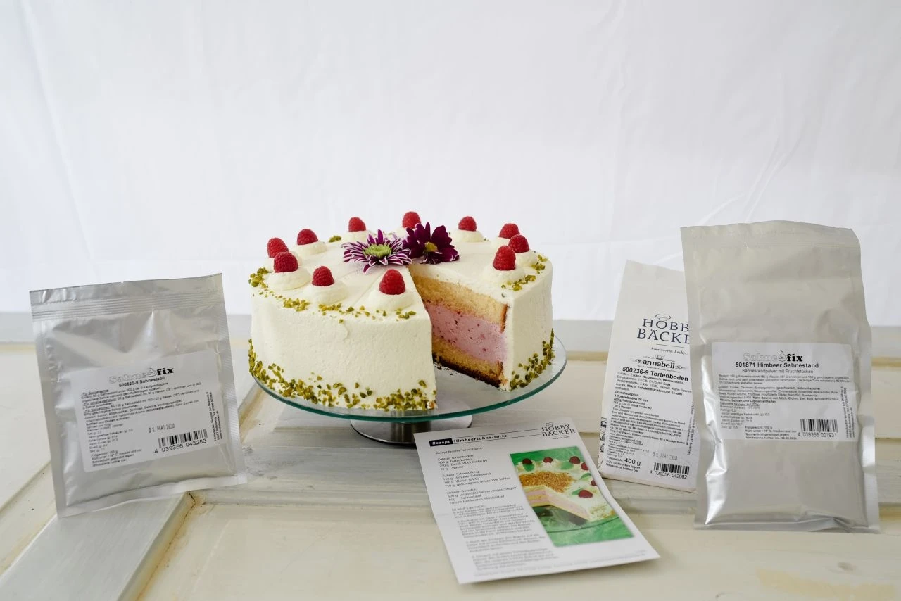 Die feine Süße frischer Himbeeren, gekrönt mit cremiger Sahne – da kann niemand widerstehen. Verwöhnen Sie sich und Ihre Gäste mit einer köstlichen Himbeer-Torte aus der eigenen Backstube. Dieses Backset enthält alles, was Sie brauchen. Nur noch frische Eier und Sahne besorgen und dann ran ans Backen. Ein detailliertes Rezept mit hilfreichen Tipps und Tricks zur Zubereitung liegt selbstverständlich bei. Der Setinhalt reicht für eine Torte mit einem Durchmesser von 26 cm.