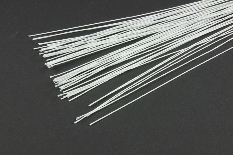 Kreieren Sie eine außergewöhnliche Tortendeko. Der mit weißgrauem Papierband ummantelte Eisendraht ist ideal als Stiel Ihrer selbst modellierten Blumen oder Herzen aus Dekormasse. Die Länge ist individuell kürzbar. Draht nicht zum Verzehr geeignet.