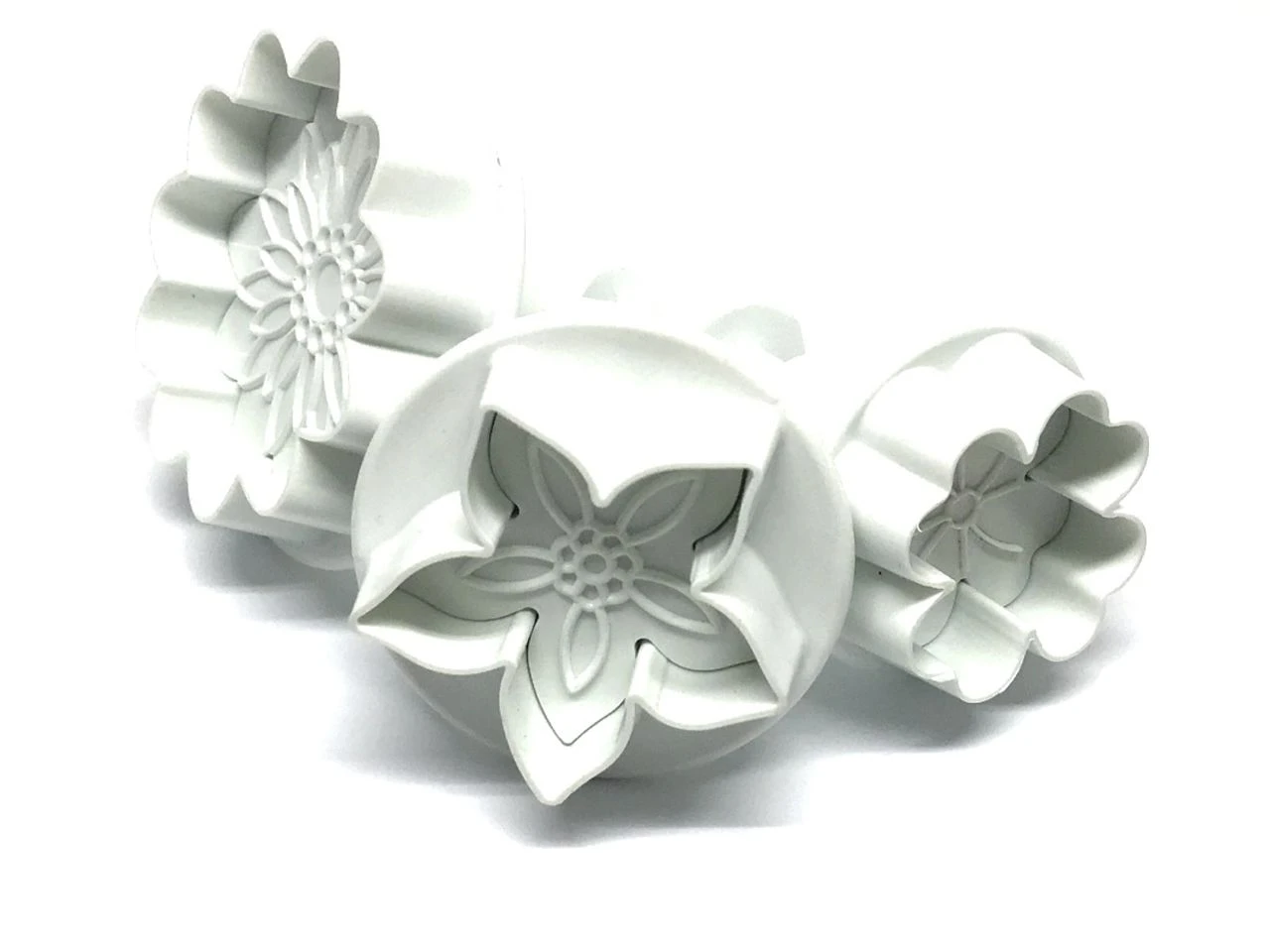 DEKOFEE Ausstecher-Set Mit Stempel: Blüten-Mix, Kunststoff, Weiß, 3er-Set