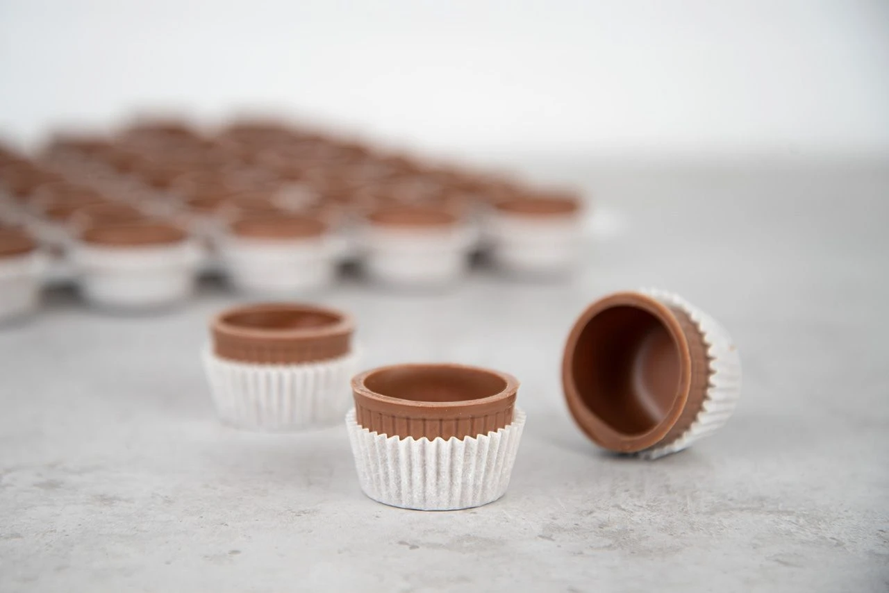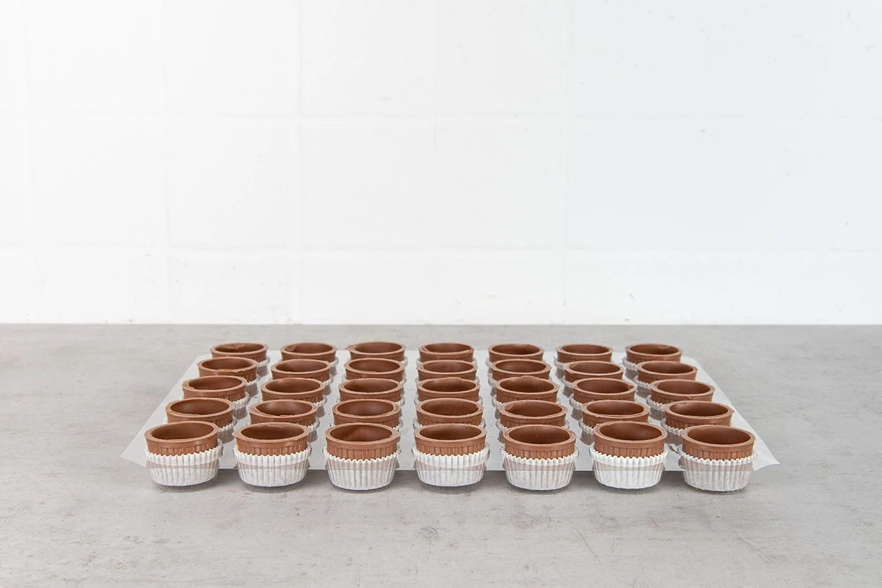Die kleinen Dessert-Sahne-Töpfchen aus feiner Vollmilchschokolade lassen Ihnen alle Möglichkeiten kreativer Naschkunst. Verwenden Sie sie zum Beispiel für süße Rahm-Kübelchen-Pralinen oder als essbares „Geschirr“ für feine Sahnedesserts. Und auch als leckere Verpackung für Eierlikör kommen die Töpfchen immer gut an.