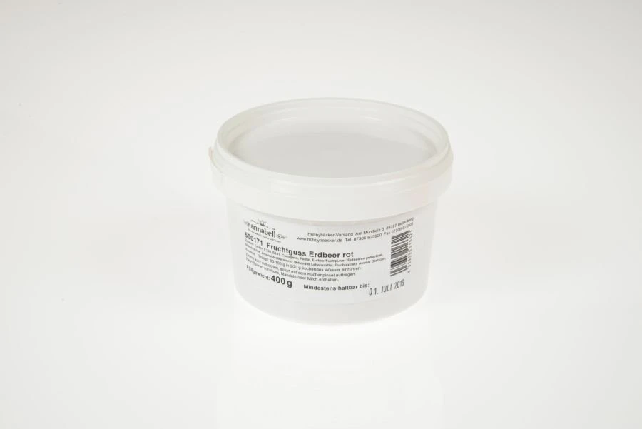 Genießen Sie dieses Geschmackserlebnis: Unser Fruchtguss Erdbeer gibt Ihrem Obst den Extraschuss Aroma. So peppen Sie Obst, das zu wenig eigenes Fruchtaroma hat, gekonnt auf und jeder Obstkuchen wird zur Sensation. Lässt sich mehrmals erwärmen und kann auch als Aprikotur verwendet werden.
