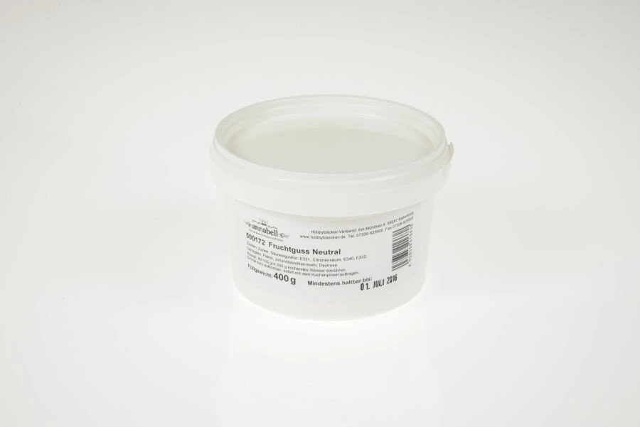 Konservenobst, gefrorene Früchte oder Früchte aus dem Supermarkt haben oft zu wenig eigenes Fruchtaroma – kein Problem, wenn Sie Ihren Kuchen mit unserem Fruchtguss Neutral abrunden.Der herrlich aromatische Geleeguss wird Sie mit seinem vollen Fruchtaroma überzeugen. Er ist auch sehr gut als Aprikotur zu verwenden. Lässt sich mehrmals erwärmen.