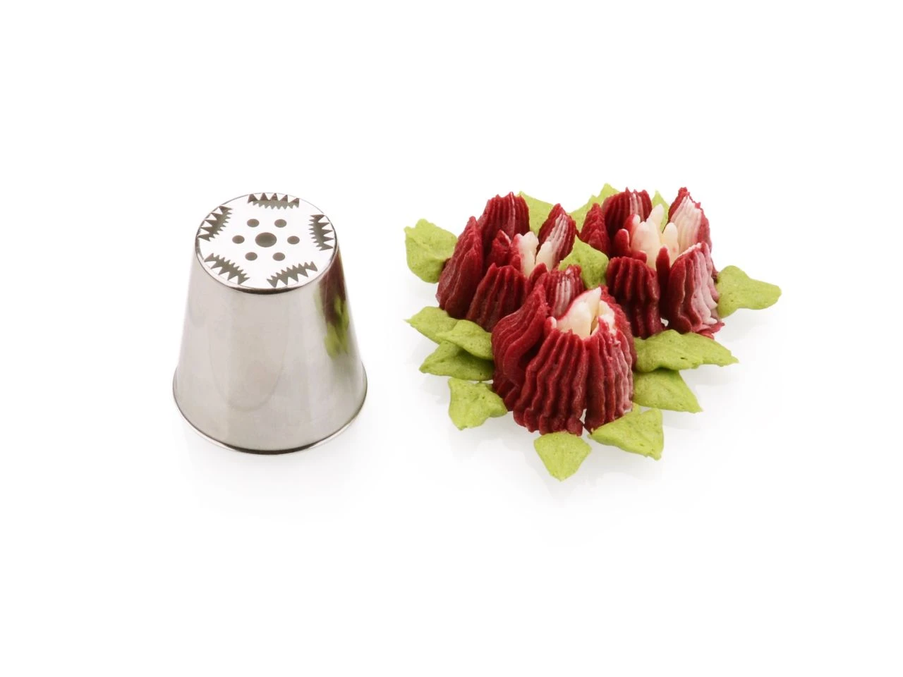 Dressieren Sie Sahne und Cremes auf Torten, Desserts & Cupcakes wie die Profis. Mit der Garniertülle Tulipa Blue Parrot aus Edelstahl gelingen Ihnen wunderschöne Blüten in Form russischer Tulpen oder in der Optik von Tulpen. Die nahtlose Tülle ist rostfrei und kann in der Spülmaschine gereinigt werden.