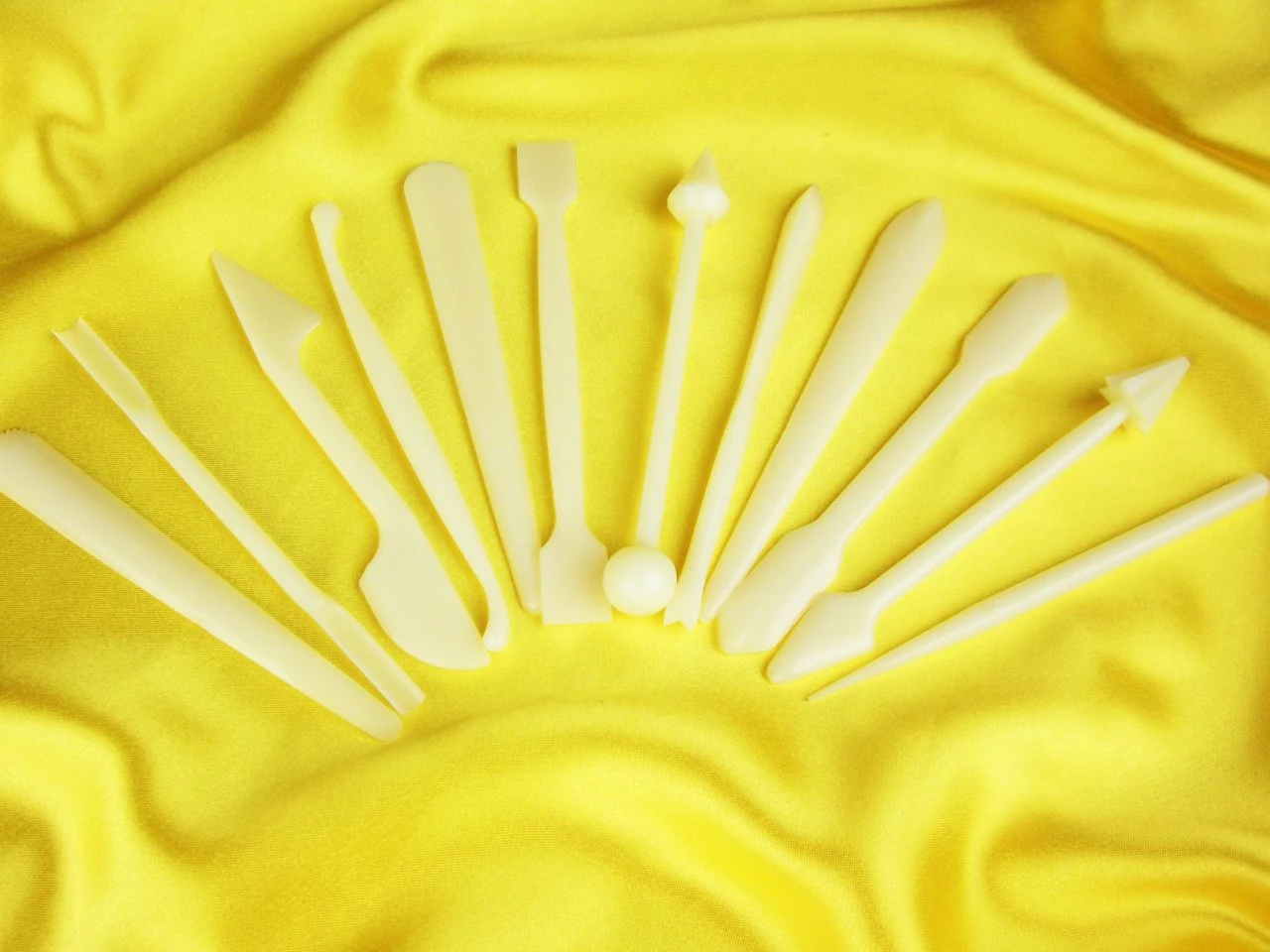 Für Ihre Tortenfiguren & Dekorationen aus Marzipan oder Fondant empfehlen wir unser Marzipan-Modellierbesteck im 12-teiligen Set aus Kunststoff. Das Modellierwerkzeug ist ideal für Anfänger und zum Einstieg im Cake Design geeignet. Mit dem Marzipan-Besteck lassen sich etliche Formen kreieren. Die Marzipan-Tools bestehen aus PVC (Polyvinylchlorid), einem lebensmittelechten Kunststoff, der säurebeständig und spülmaschinenfest ist.