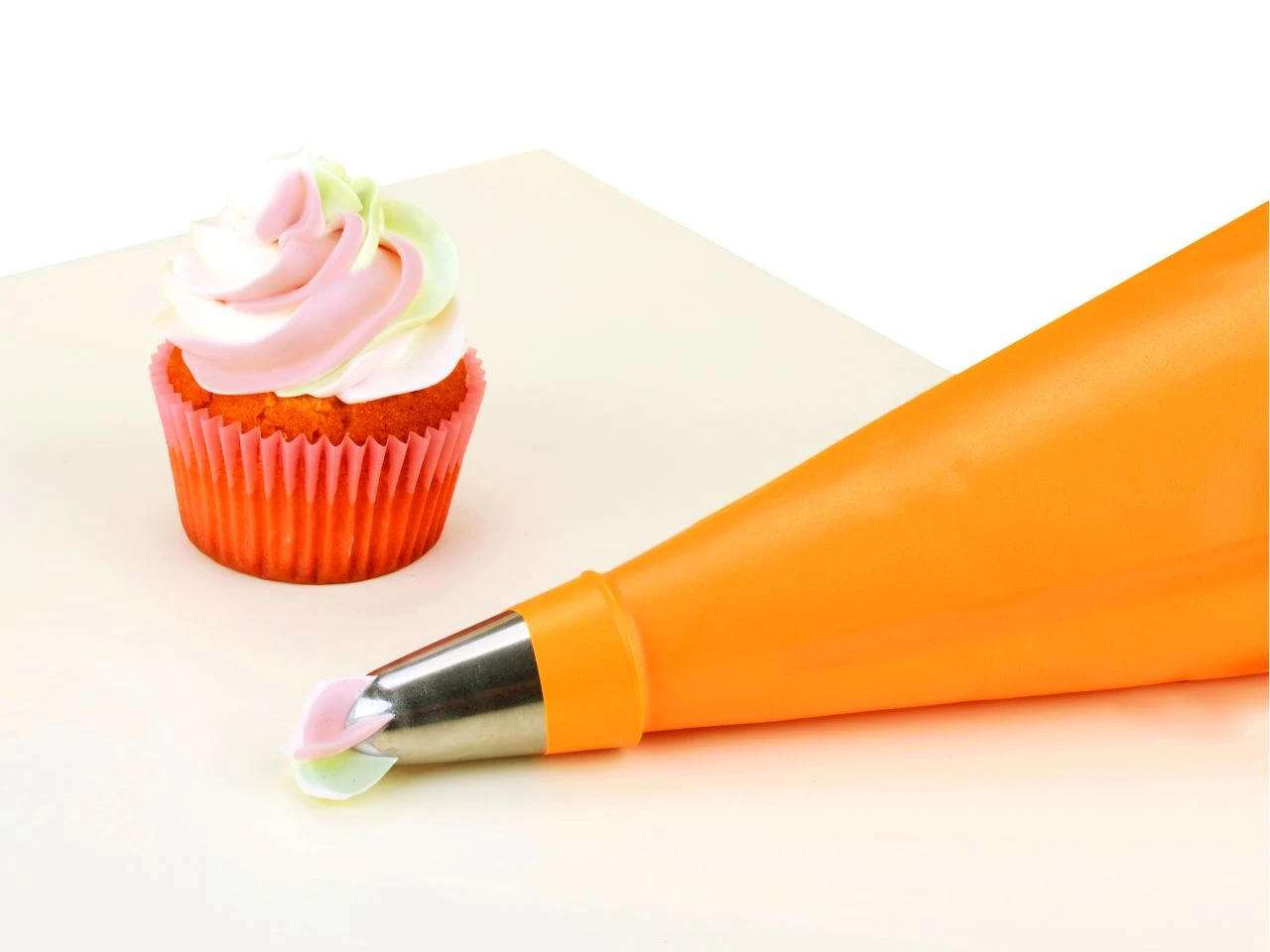 Die extrem strapazierfähige Spritztüte besteht aus Silikon und ist enorm belastbar, reißfest, temperaturbeständig und daher spülmaschinenfest. Der Beutel mit Aufhänger weist eine raue, griffige Außenseite auf und ist innen besonders glatt für optimale Transportfähigkeit. Die gewünschte Lochgröße schneiden Sie nach Bedarf zu.