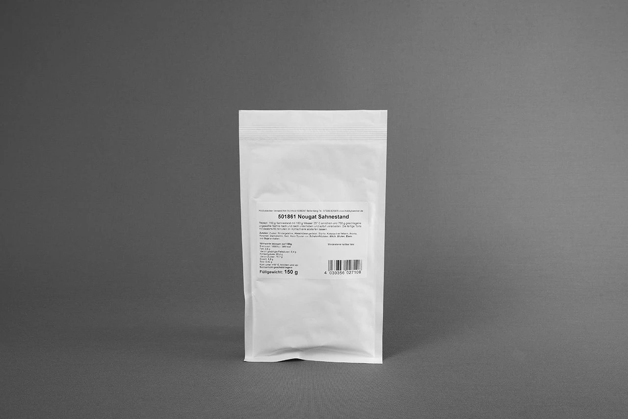 Helles Haselnussnugat liefert in diesem Sahnestand den feinen, unvergleichlichen Geschmack. Der Sahnestand eignet sich übrigens nicht nur für eine leckere Torte: Kombinieren Sie ihn mal mit Löffelbiskuits und machen daraus ein schnelles Dessert. Die Anwendung ist kinderleicht: Einfach Sahne aufschlagen, den Sahnestand nach Anleitung anrühren und die Sahne unterrühren – fertig ist die leckere Nugat-Sahne. 1 Beutel reicht für 750 g Sahne, also eine Torte oder zwei Biskuitrollen. Preise gelten jeweils für einen Beutel.
