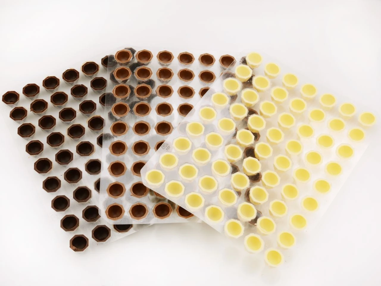 Die Pralinen-Schokoladenschale kann einfach mit Kuvertüre oder mit einem passenden Schokoladenaufleger für Pralinen-Schalen aus unserem Online-Shop verschlossen werden.