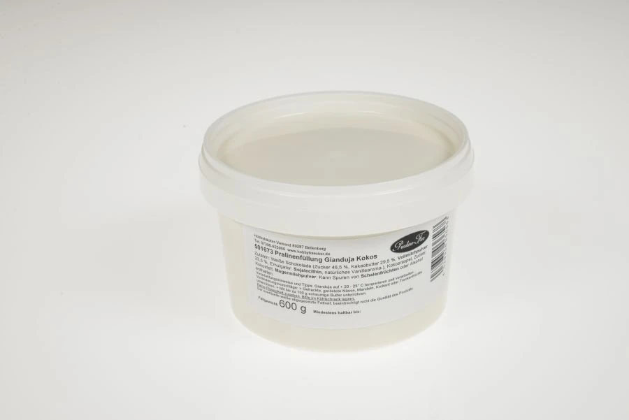 Gianduja Kokos ist eine traumhafte Verbindung von weißer Kuvertüre, sehr feinen und leicht gröberen Kokosflocken und Zucker. Diese zart schmelzende Pralinenfüllung haben wir in unserer Backstube aus allerfeinsten Zutaten zur perfekten Pralinenfüllung komponiert. Ausreichend für eine Lage Pralinen oder ca. 40 weiße Kokostrüffelkugeln. Enthält Alkohol