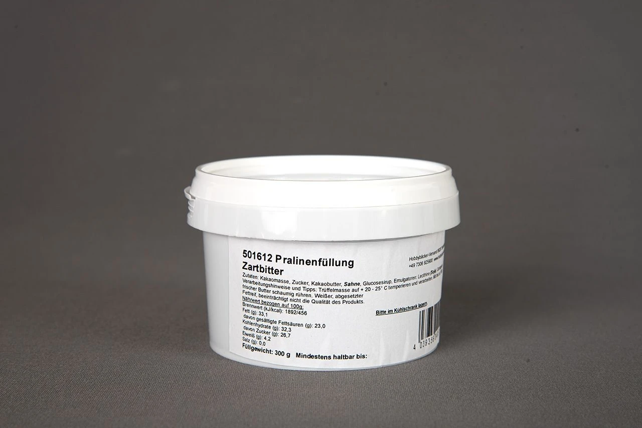 Die dunkle Füllung verwandelt Ihre Pralinen in zart schmelzende Köstlichkeiten. Die Mischung aus frischer Sahne, Zartbitter-Schokolade und Bonbonsirup ist eine unwiderstehliche, schnelle Füllung für Ihre Pralinen. Hergestellt in unserer Backstube. Ausreichend für eine halbe Lage Pralinen.