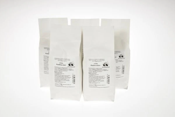 Möchten Sie ein herzhaftes sowie leckeres Brot mit einem hohen Roggenanteil zubereiten? Dann ist der Griff zu unserer Roggenmischbrot Rustikus Backmischung die richtige Wahl. Mit der gelungenen Mischung zaubern Sie im Handumdrehen saftige krustige Bauerbrote für die ganze Familie. Das Beste daran: Die Brote schmecken nicht nur köstlich, sondern sind auch besonders gut bekömmlich. Die Backmischung für Roggenmischbrot Rustikus eignet sich ebenso ideal zur Herstellung von Grundteig für Gewürzbrot wie dem Gewürzlaib Tiroler Art oder auch zur Zubereitung von Roggenmischbrot Brot und Brötchen. Sie kann sowohl für Backvorhaben im Ofen als auch zum Backen im Brotbackautomaten verwendet werden und lässt Ihnen das Brotbacken leicht von der Hand gehen. Denn neben der Mehlmischung genügt lediglich die Zugabe von etwas Trockenhefe und Wasser, um schmackhafte Bauernbrote zu zaubern. Anschließend sollten Sie den Teig 30 Minuten lang ruhen lassen und eine Stunde im Gärkorb aufgehen lassen. Nun können Sie in weniger als einer Stunde köstliche Brotlaibe backen. Probieren Sie es einfach aus, Sie werden sehen, Sie werden es lieben.