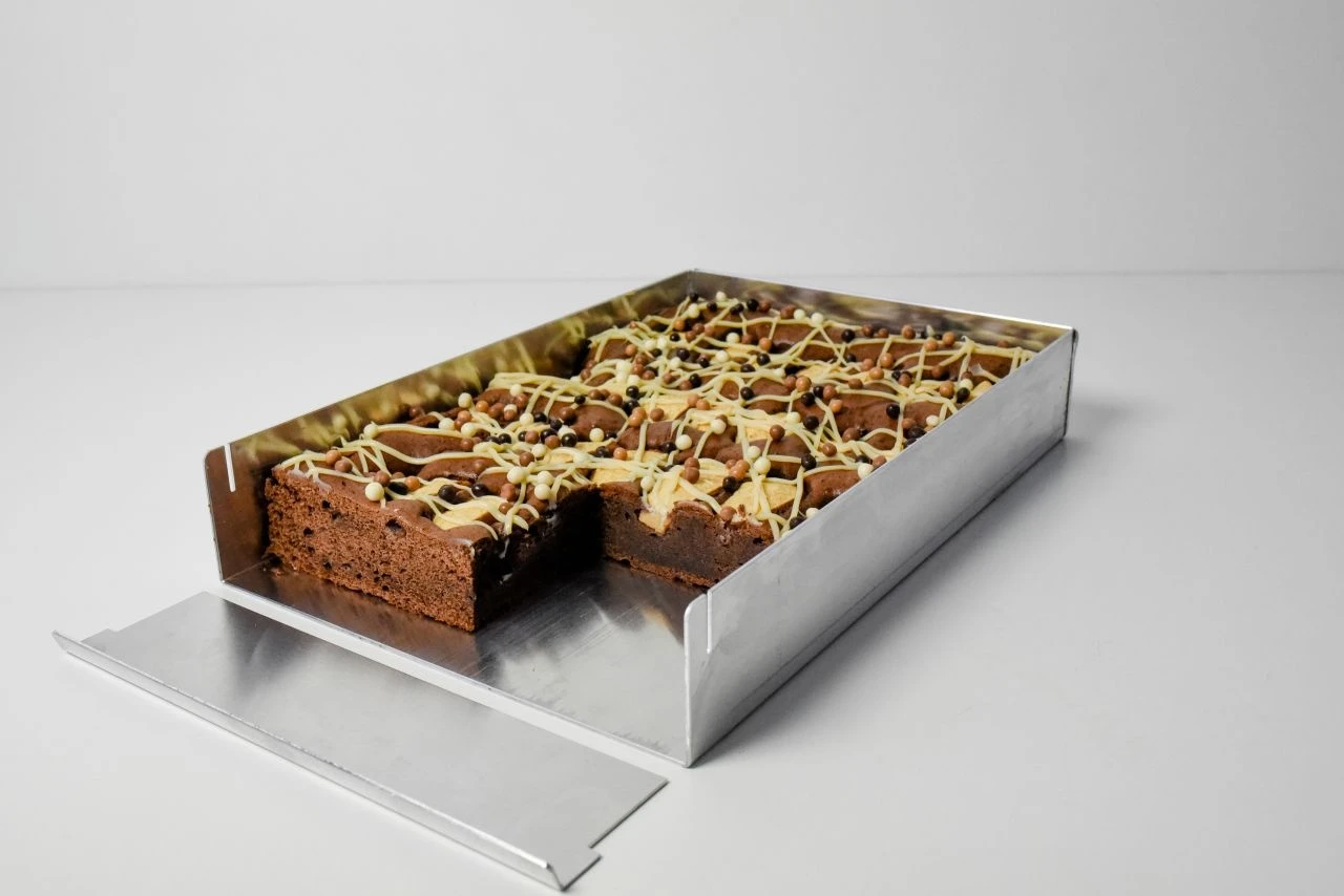 Wer dicke Blechkuchen liebt, kommt um dieses Schnittenblech nicht herum. Das Aluminiumblech mit abnehmbarer Vorsatzschiene passt mit seinen Maßen und dem 5 cm hohen Rand in jeden Küchenherd. Sahne- und Cremeschnitten sowie Blechkuchen gelingen Ihnen damit garantiert.