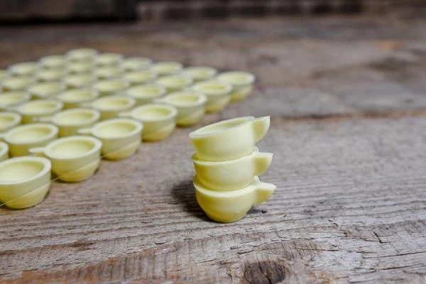 Niedliche Minitässchen aus weißer Schokolade erfreuen sich großer Beliebtheit an der Kaffeetafel. Ihre Gäste werden dieser Nascherei nicht widerstehen können.