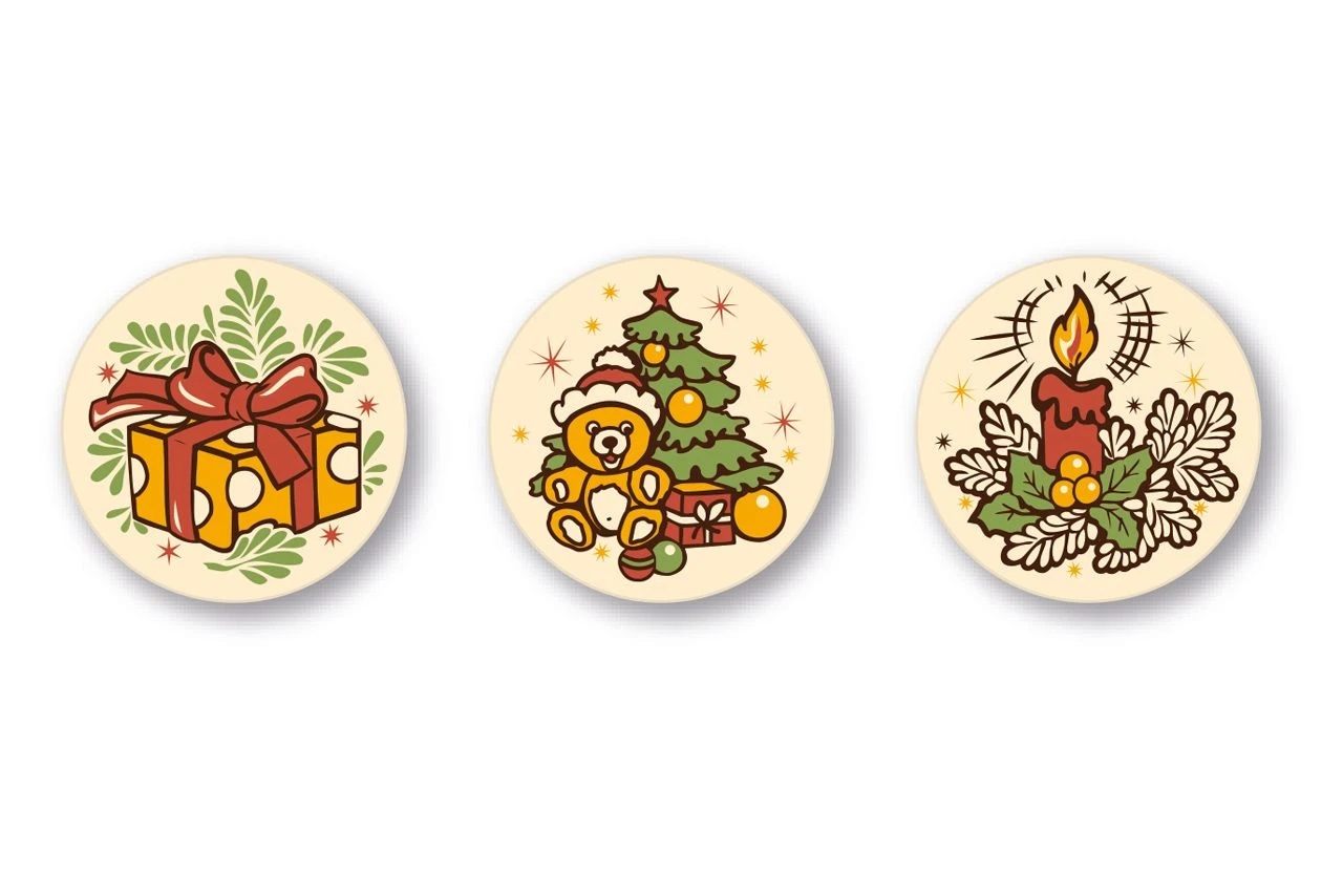Produktinformationen „Schokoaufleger Weihnachtsmotive, Ø 3 cm, 24 Stück“