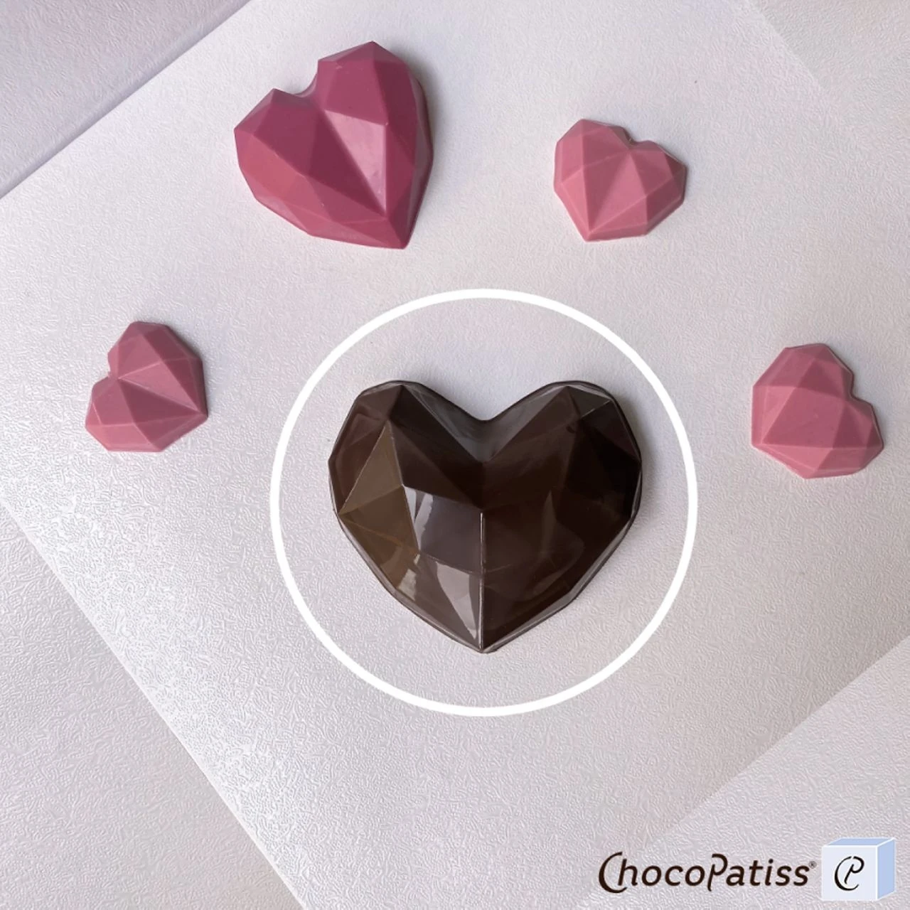 Diese Schokoherzen bestechen mit ihrem modernen Look in Diamanten-Optik. Mit dieser Schokoladenform können Sie die Herzen ganz einfach selber machen. Alles was Sie dazu brauchen ist Schokolade oder Kuvertüre und die Gießform. Mit der Schokoladenform können Sie zwei Halbschalen auf einmal gießen.