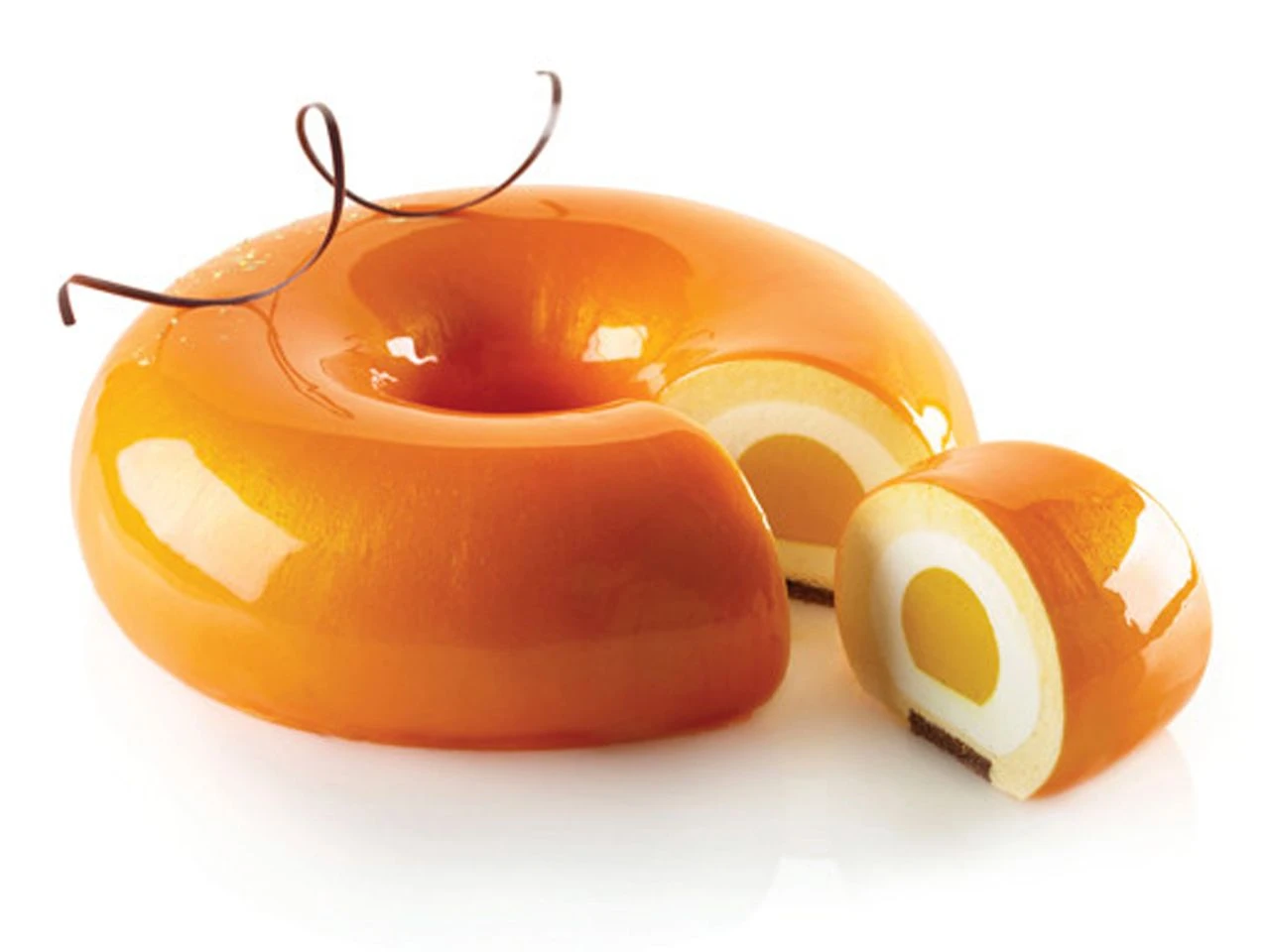 Besonders an diesem Silikon-Backform-Set für Savarin-Kuchen ist seine extravagante Optik mit dreigeteilten Schichten im Inneren.