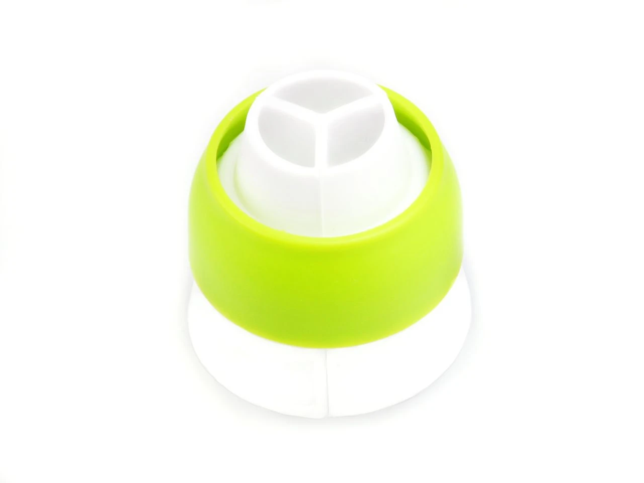 Bleiben Sie flexibel und nutzen Sie diesen großen Spritztüllen-Adapter für drei Spritzbeutel zum gleichzeitigen Dressieren von drei Farben. Der weiß-grüne Adapter für Tüllen besteht aus Kunststoff und verfügt über viel Kompatibilitätsspielraum mit unseren Lochtüllen, Sterntüllen, Sternbandtüllen, französischen Tüllen und Icing Nozzles.