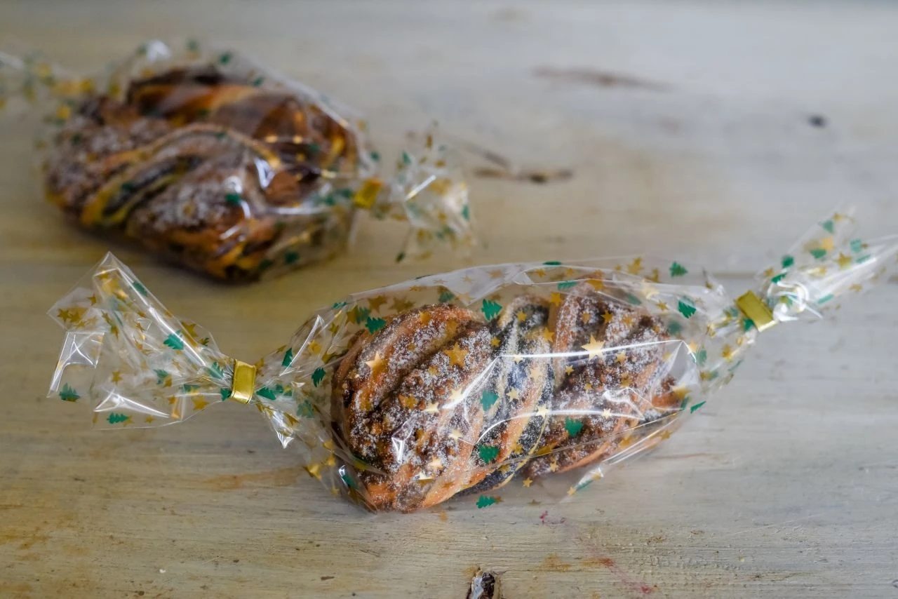 Da kann man Ihrem selbst gebackenen Stollen noch weniger widerstehen. In dem Stollenschlauch ist er edel verpackt und lässt sich so auch prima verschenken. Bestellen Sie auch gleich unsere Verschluss-Clips gold für die Gebäckbeutel, 25 Stück dazu.