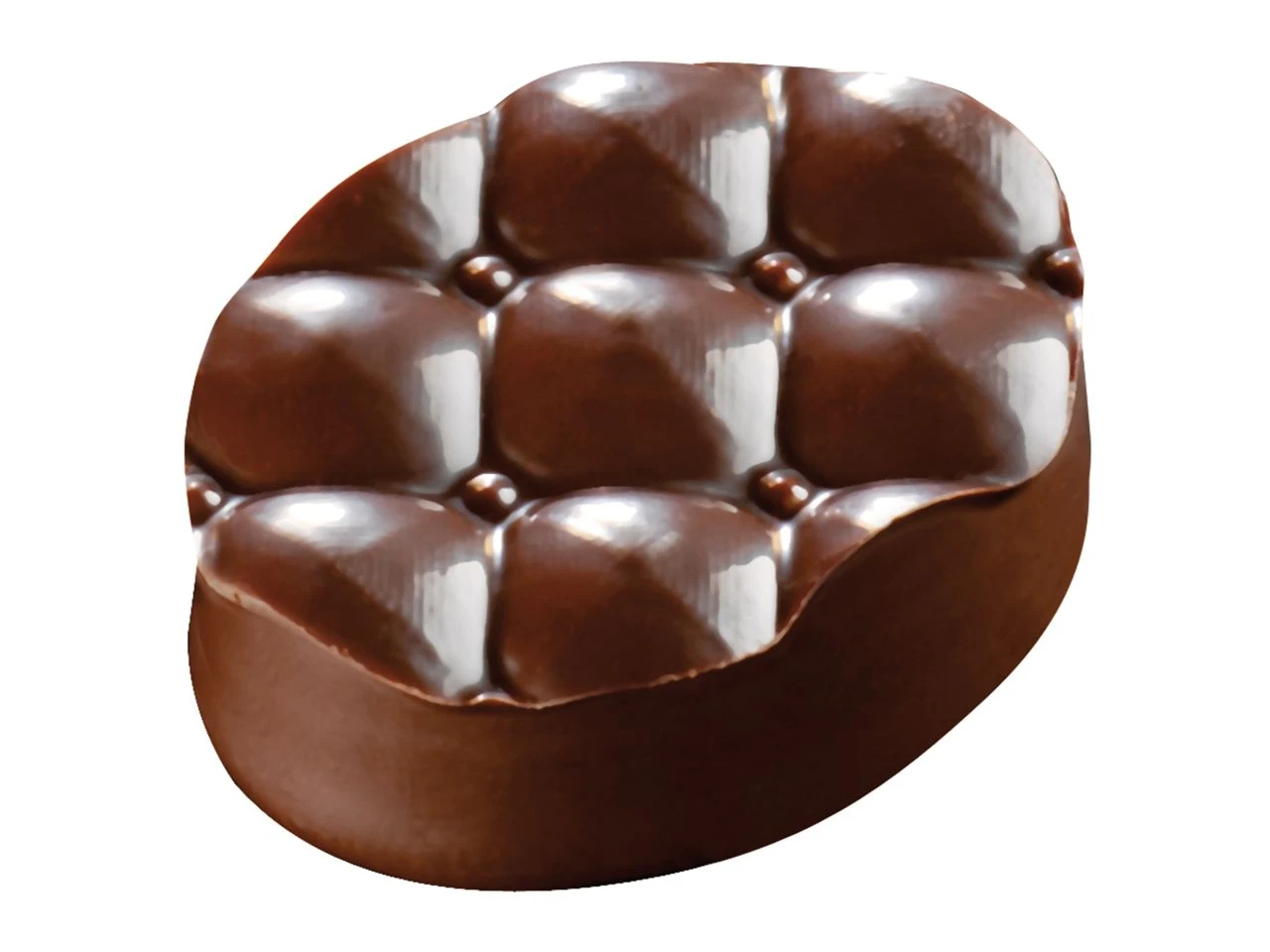 Bringen Sie mit der Strukturfolie Matelassé aus PVC-Folie ein gestepptes Muster auf Ihre Kuvertüre-Oberflächen, Torten oder Dessertcremes. Die transparente Strukturmatte misst 40 cm x 25 cm.