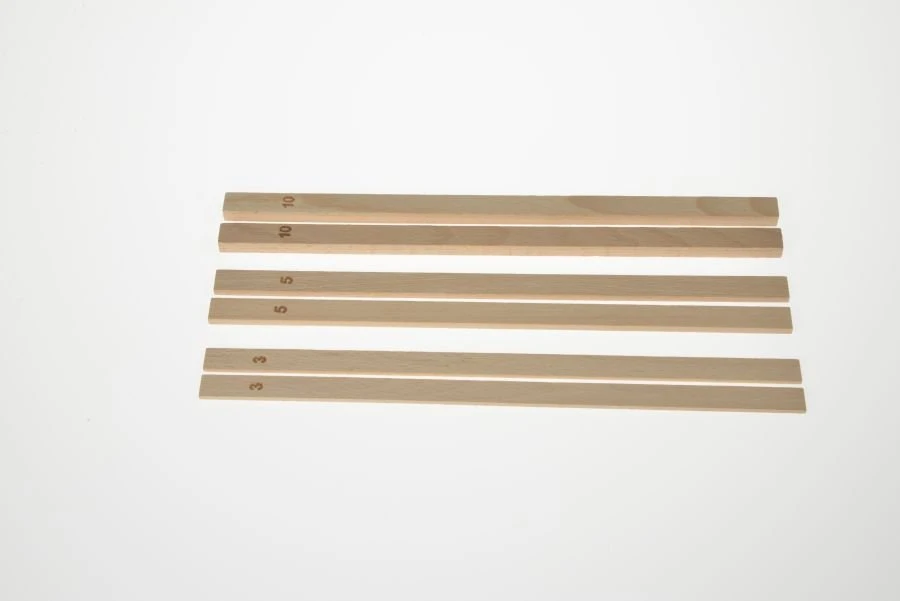 Dieses Leisten-Set ermöglicht Ihnen, durch je 2 gleich große Hölzer in den Stärken 3, 5 und 10 Millimeter einen gleichmäßig ausgerollten Teig.