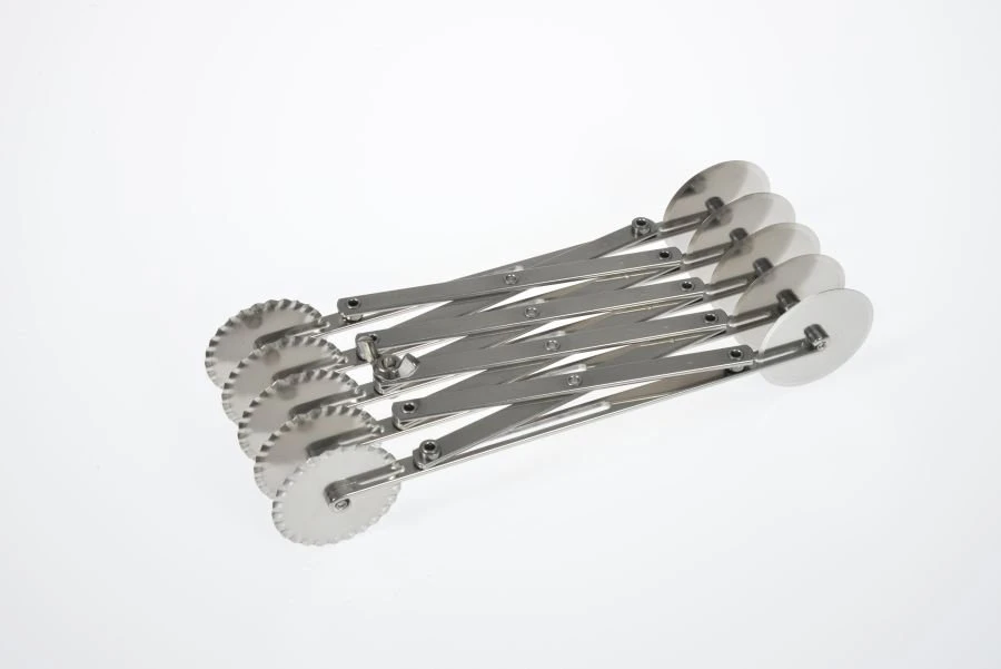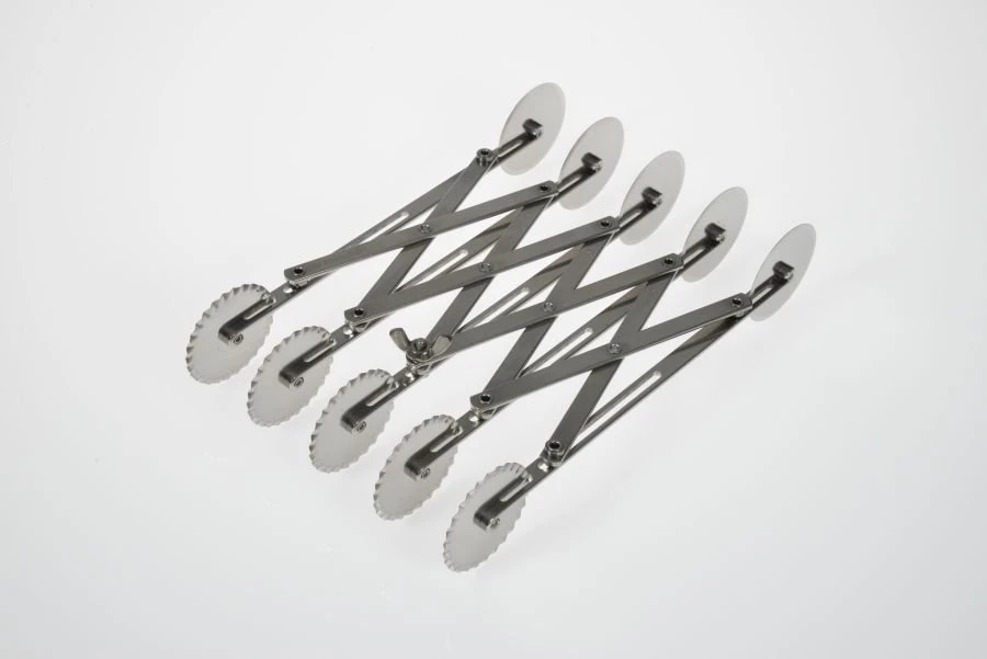 Ob glatte oder gerippte Schnittkanten, dieser Edelstahl-Teigschneider kann beides. Damit gelingt das Einteilen, Markieren und Schneiden von Teig mühelos. Dank Scherenkonstruktion können Sie in einem Arbeitsgang gleichmäßige Stücke einteilen. Die variable Breite erlaubt maximale Flexibilität.