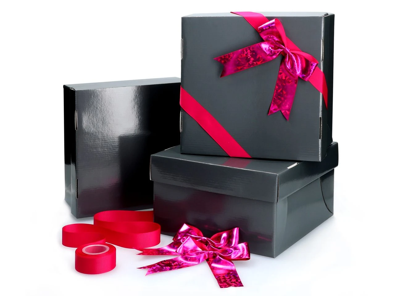 Jede Tortenbox besteht aus einem stabilen Karton sowie einem separaten Deckel. Geliefert wird das insg. 10-teilige Tortenboxen-Set zum Selbstaufrichten mit zehn Metern Schleifenband in Pink und drei rosafarbenen Schleifen mit Klebepunkten.