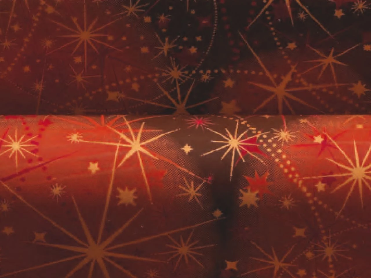 Dekoratives Verschönern Ihrer Gebäcke, Pralinen & Desserts funktioniert mit Transferfolie Antlia in Rot mit 40 cm x 25 cm. Die Folie mit weihnachtlichem Design aus Kakaobutter ist glutenfrei und mit natürlichen Farbstoffen koloriert (Kurkumin, Echtes Karmin).