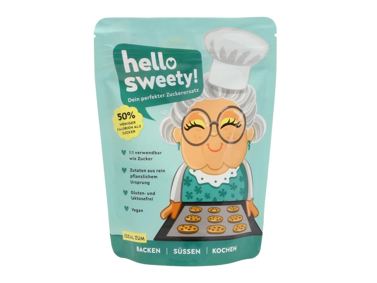 Sie möchten Zucker und Kalorien sparen, aber nicht auf das Süße im Leben verzichten? Probieren Sie den kalorienreduzierten Zuckerersatz Hello Sweety – Zucker der Zukunft zu 250 g von der hello sweety AG aus der Schweiz! Diese Zuckeralternative aus Isomaltulose (Glukose & Fructose) und pflanzlichen Süßungsmitteln (Erythrit, Inulin und Stevia) ist glutenfrei, laktosefrei, vegan und bietet Ihnen 50 % weniger Kalorien als Haushaltszucker. Sie verwenden diesen Ersatz 1:1 wie Zucker zum Backen, Süßen und Kochen.